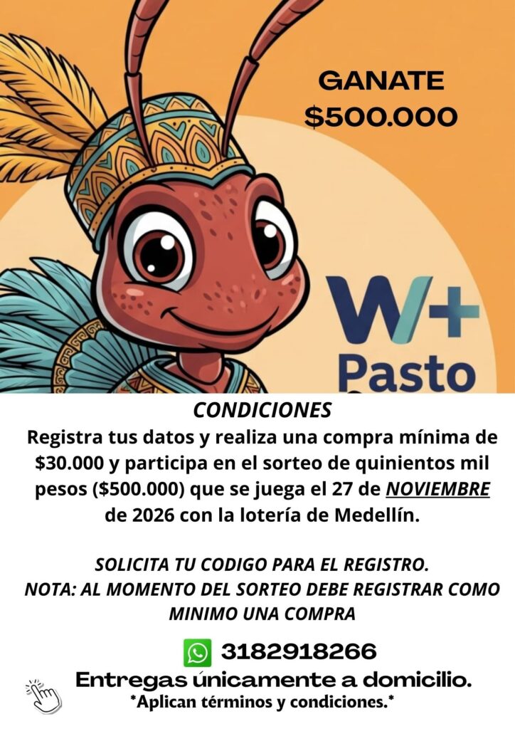 IR AL CATALOGO GRACIAS POR VISITAR MI TIENDA, BIENVENIDO CLICK CLICK CLICK CLICK CLICK CLICK Nuestros productos están sujetos a disponibilidad, los precios pueden cambiar sin previo aviso. CAMPAÑA COMERCIAL. Entregas en la zona urbana de Pasto. El valor mínimo de la compra $ 15.000, valor del domicilio $ 3.500, las compras superiores a $ 80.000 el domicilio es gratis, solo debe escribir en el cupón el código W+80 REGISTRA TUS DATOS POLITICAS CONTACTANOSPor favor, activa JavaScript en tu navegador para completar este formulario.DATOS PERSONALES *NombreApellidosCORREO ELECTRONICO *Correo electrónicoConfirmar el correo electrónicoTELEFONO DE CONTACTO *TELEFONO DE CONTACTO 2MEDIO DE CONTACTO *TELEFONOWHATSAPPCORREO ELECTRONICOMENSAJEENVIAR